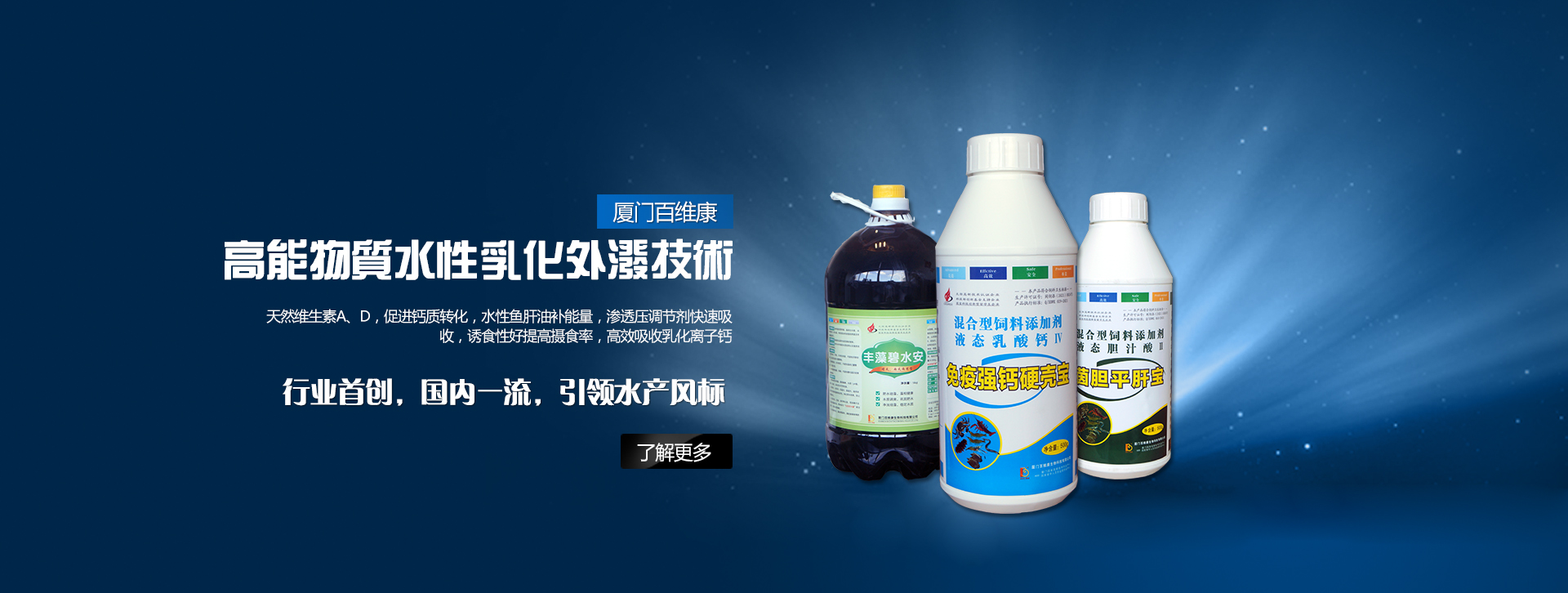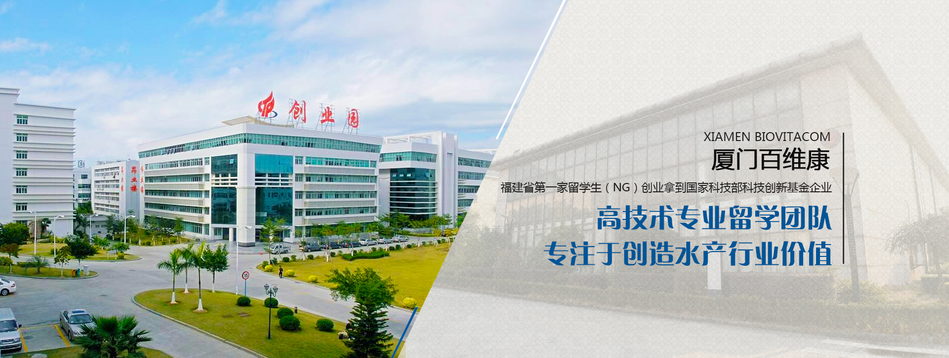廈門(mén)百維康生物科技有限公司是一家由留法、留美博士以及國(guó)內(nèi)知名學(xué)者聯(lián)合創(chuàng)辦的現(xiàn)代化留學(xué)生企業(yè),公司坐落在廈門(mén)火炬高新技術(shù)園區(qū)——廈門(mén)國(guó)家高新技術(shù)創(chuàng)業(yè)中心·國(guó)家留學(xué)人員創(chuàng)業(yè)園內(nèi),是廈門(mén)市第一家、福建省第一家留學(xué)生(NG)創(chuàng)業(yè)拿到國(guó)家科技部科技創(chuàng)新基金企業(yè),主要致力于生物水質(zhì)改良劑、動(dòng)物營(yíng)養(yǎng)以及生物化學(xué)方面的研究、開(kāi)發(fā)、生產(chǎn)與服務(wù)。