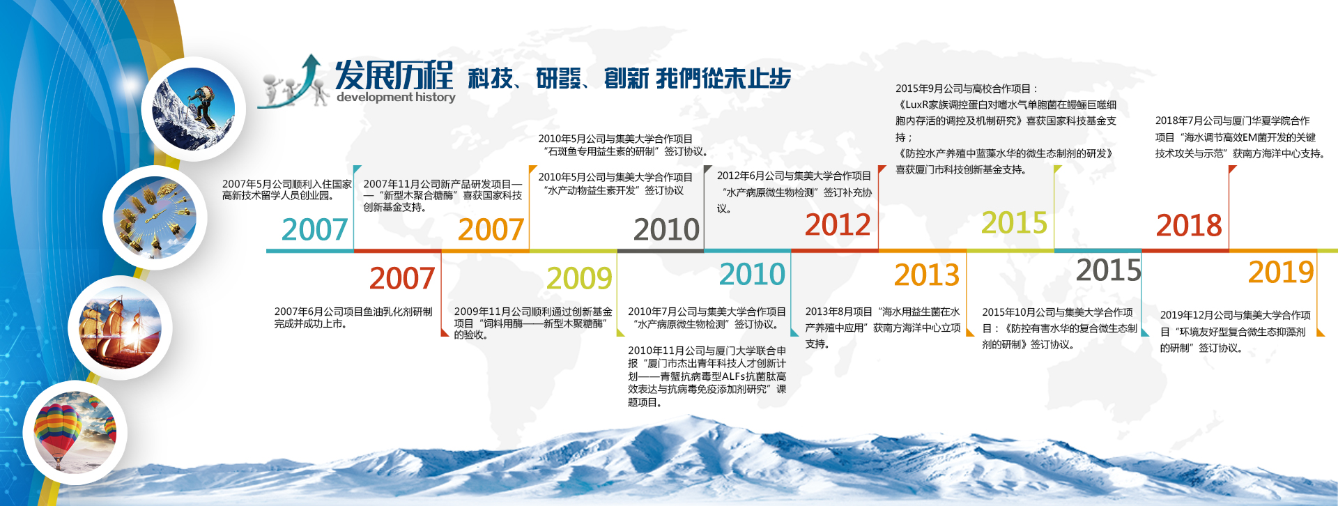 科技是企業(yè)發(fā)展的源泉,在利用自身在生物以及營(yíng)養(yǎng)領(lǐng)域的科技優(yōu)勢(shì)與實(shí)踐經(jīng)驗(yàn)不斷的進(jìn)行系列新產(chǎn)品研究開(kāi)發(fā)的同時(shí),公司還吸引了一大批一流的技術(shù)專(zhuān)家和科研人員共同參與到公司產(chǎn)品的研究與開(kāi)發(fā)中來(lái),并與廈門(mén)大學(xué)、集美大學(xué)、中國(guó)海洋大學(xué)等高校共建科研中心,實(shí)現(xiàn)了由高??蒲谐晒绞袌?chǎng)需求新產(chǎn)品的高效、快速轉(zhuǎn)化。